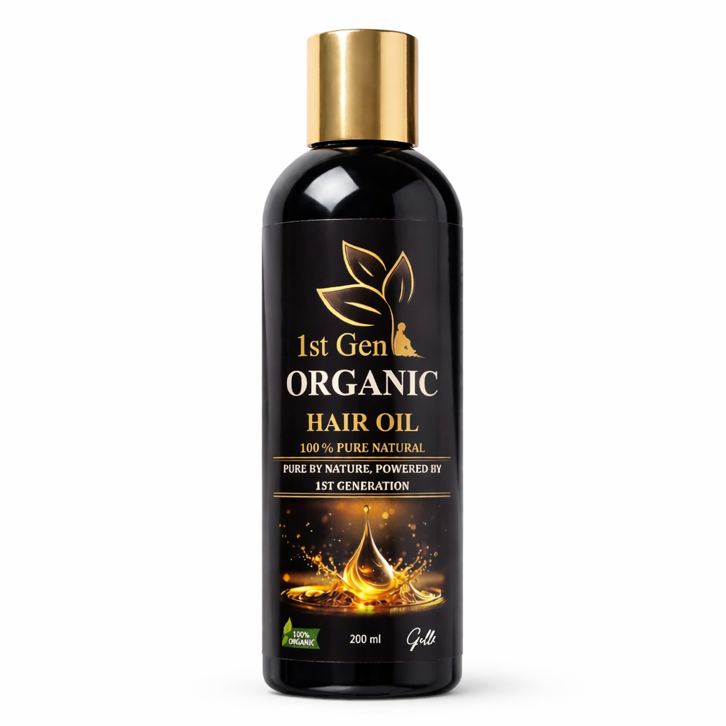 Experience the power of nature with 1st Gen Organic Hair Oil. Crafted from pure, organic ingredients, this hair oil deeply nourishes the scalp, strengthens hair follicles, and restores shine and softness. It helps reduce hair fall, repair damage, and promote healthy hair growth naturally. Free from chemicals, sulfates, and parabens, it’s the perfect choice for daily hair care and maintaining strong, luscious hair.